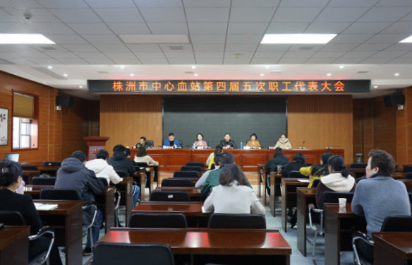 3月28日,株洲市中心血站第四届五次职工代表大会在七楼学术报告厅隆重召开,24名职工代表参加会议,市卫健委党委委员、副主任李晓兵到会指导。