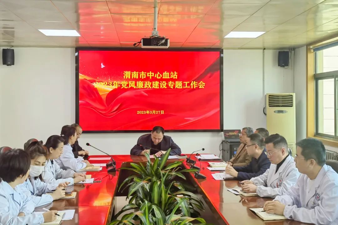 3月27日,渭南市中心血站召开2023年党风廉政建设专题工作会,党总支书记、党总支委员及中层以上干部参加会议。