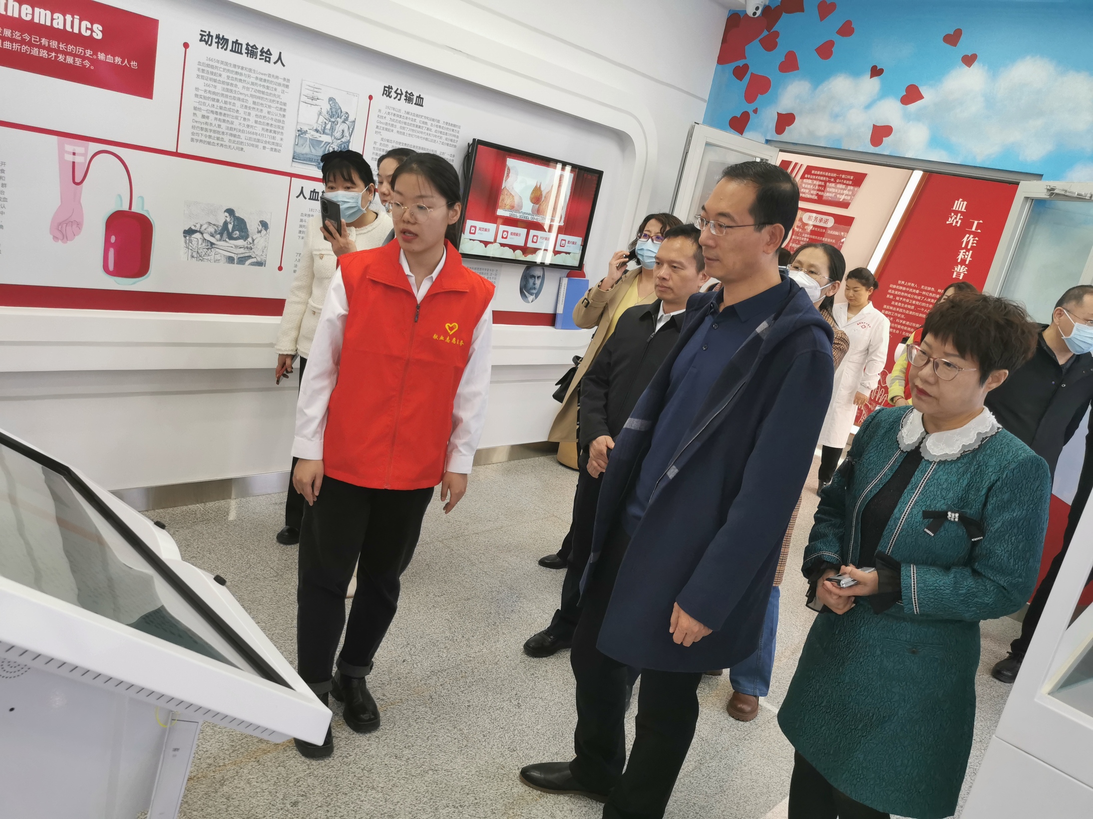 陈敏主任一行首先参观了昌吉州无偿献血科普教育基地,体验了VR献血流程、血液知识问答等互动设备。