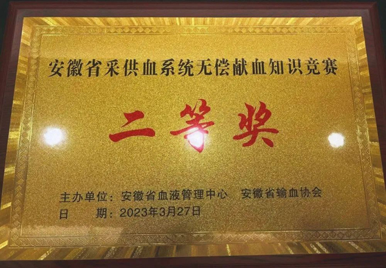 蚌埠市中心血站积极组织参赛,由崔刘伟、刘佳、唐伟纯三名选手组成代表队参加知识竞赛,经过激烈角逐,荣获二等奖。