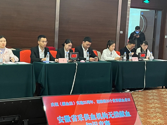 为庆祝《中华人民共和国献血法》颁布25周年,迎接第20个世界献血者日,提升社会公众对无偿献血知识的普及率和知晓率,鼓励更多符合条件的市民参与无偿献血,强化血液供应和安全意识,3月27日,由安徽省血液管理中心和安徽省输血协会主办的全省采供血系统无偿献血知识竞赛在合肥举行。全省17个参赛队伍参加此次竞赛活动。