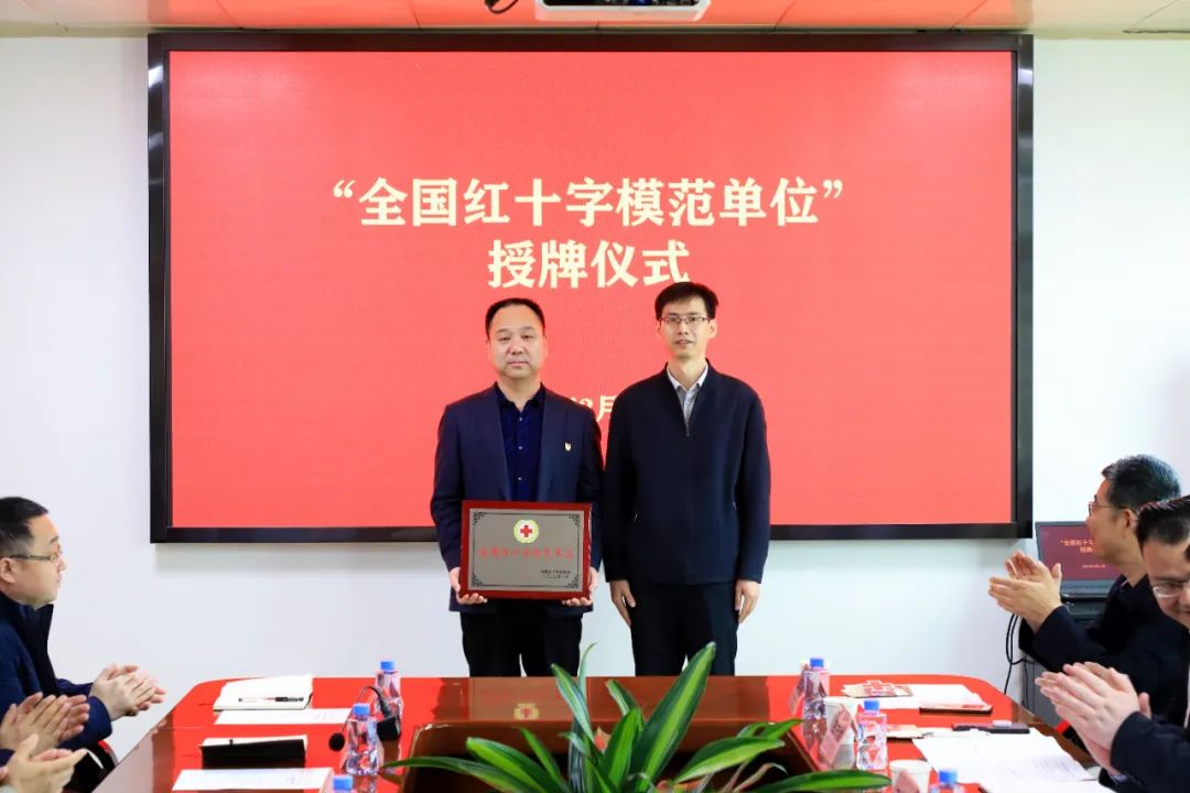 3月31日上午,省红十字会党组成员、副会长贾伟一行4人,在市红十字会办公室主任郭维的陪同下,莅临我站对“全国红十字模范单位”奖项进行授牌。市红十字会和血站领导班子成员及中层干部参加会议。市卫健委党组书记张荣岗出席会议并讲话。