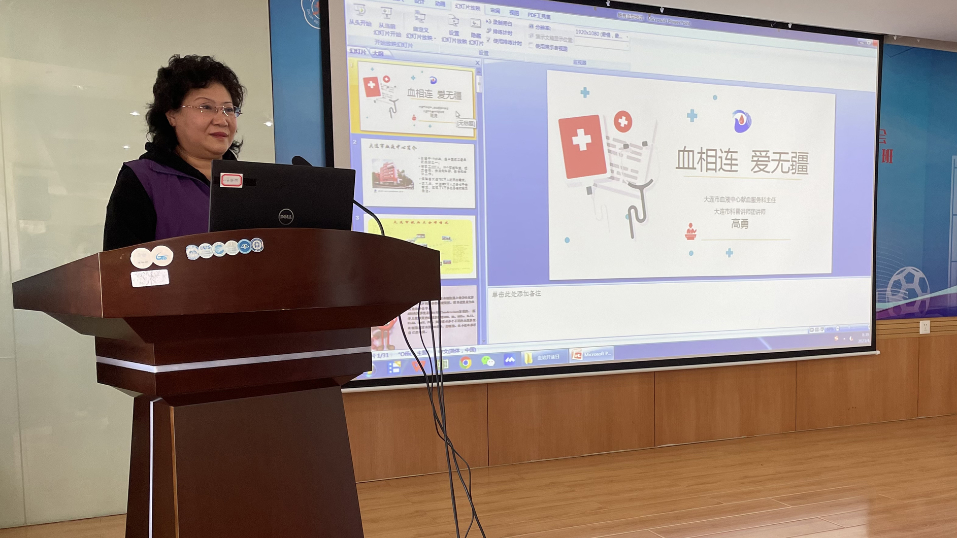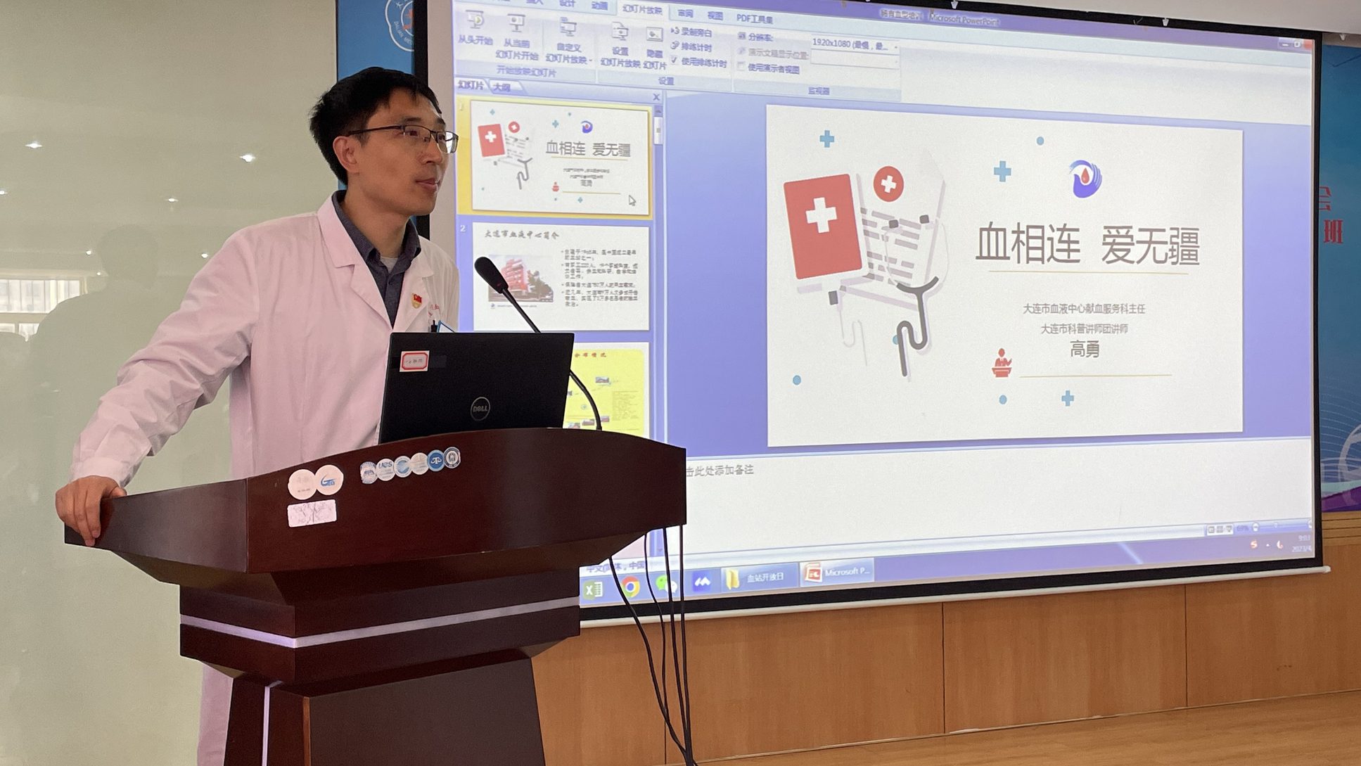 大连市血液中心献血服务科高勇主任,作《血相连、爱无疆》的专业知识指导与培训,介绍了市血液中心的职责和工作,为大家讲解了血型、无偿献血知识和背后大爱无疆的感动,让团队老队员更加坚定了一直以来坚守的信心、让新队员更加理解了这些工作的重要意义。