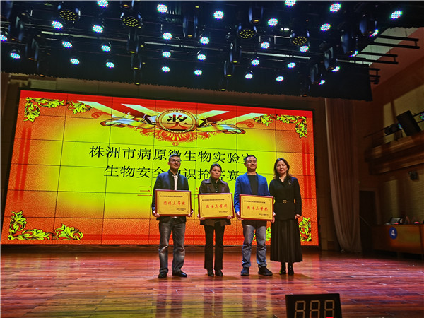 4月4日,我站职工李皓兰、袁麒辉、邓倩华三人组成代表队参加株洲市病原微生物实验室生物安全知识抢答赛,并在决赛中获得团体三等奖。