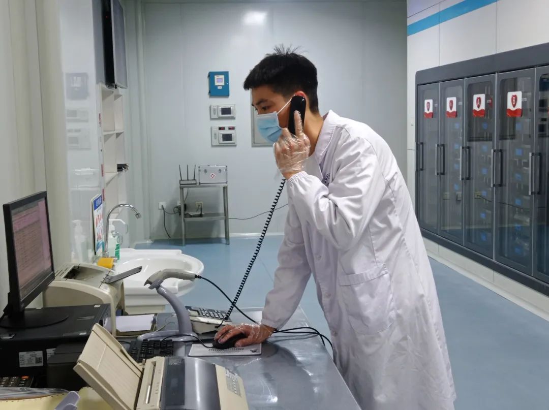 献血车上,护士有条不紊的对献血者做初筛化验、采集,冷链运送司机在第一时间将采集到的血液送回血站,成分制备科将待检血液进行分离、制备等一系列操作,同时检验科也在接到血液标本的第一时间对标本进行了化验检测。