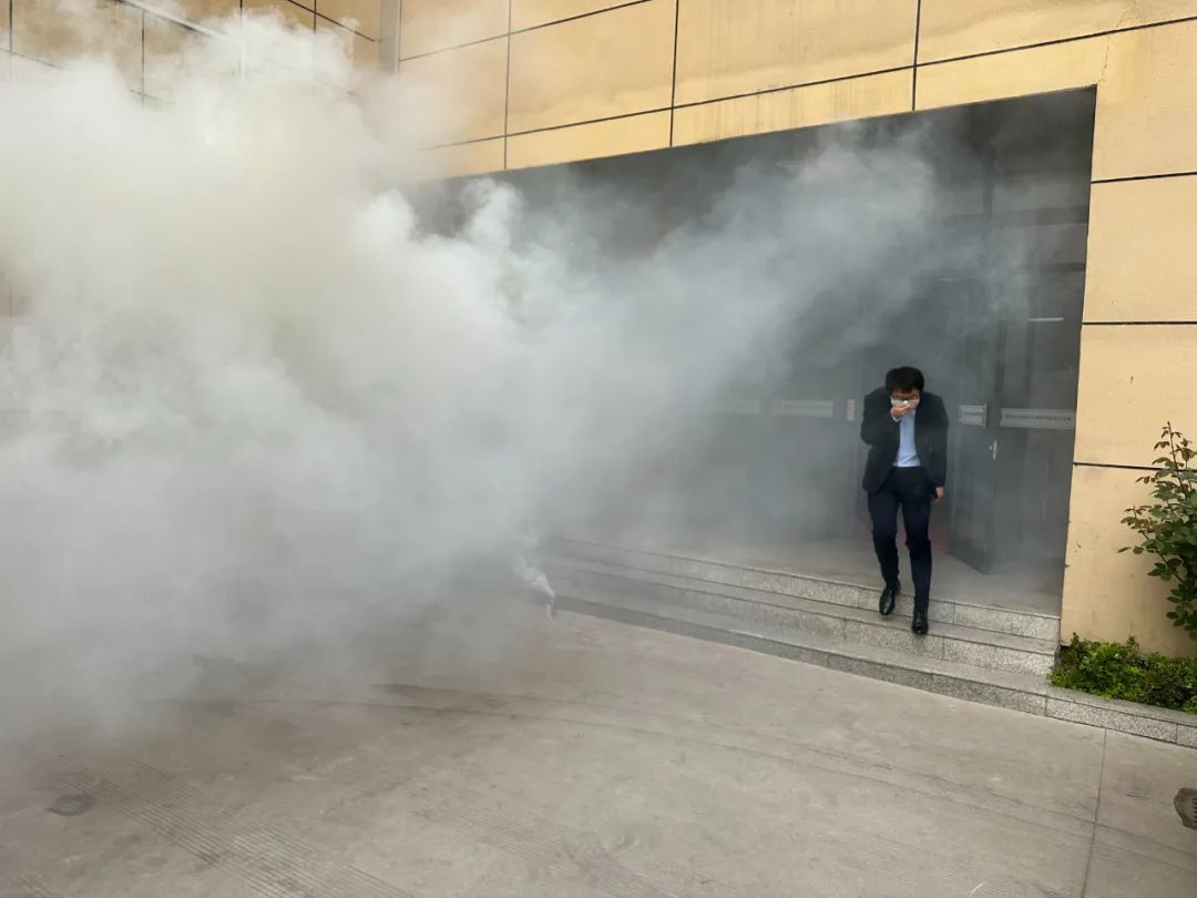 消防演练采用突发式,血站办公楼内消防警报铃声一响,大家立即进入紧急疏散状态,按照逃生演练方案设定的逃生路线,紧张有序地撤离现场。工作人员用衣服或毛巾捂住口鼻,在最短的时间内到达安全区。