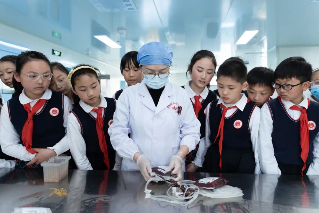 4月12日,临渭区人和小学的40名小学生走进渭南市中心血站,探寻血液的奥秘,了解无偿献血知识。