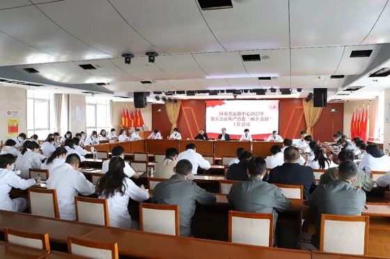 4月12日,河北省血液中心召开落实全面从严治党“两个责任”工作会议。会议通报了近期医药购销领域和医疗服务中不正之风典型案例,传达了河北省卫生健康委党组书记、主任王现坤同志以及党组成员、驻委纪检组组长郭亚敏同志在全省卫生健康系统落实全面从严治党“两个责任”会议上的讲话精神。河北省血液中心党委书记戚海对过去一年中心全面从严治党工作进行了全面回顾和总结,分析了全面从严治党的新形势新任务,梳理了中心目前存在的差距和问题,并提出今年坚持不懈推进全面从严治党的五个方面重点工作要求。