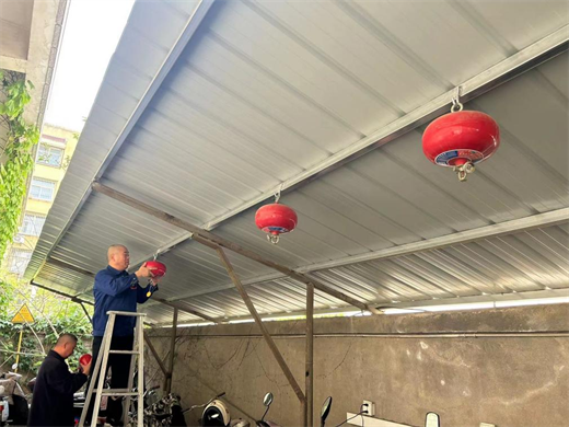 近日,中心职工电动自行车充电棚集中更换一批“灭火弹”,即悬挂式干粉灭火装置。它的外形酷似一盏大红灯笼,一旦超过68摄氏度,“灭火弹”将自动启动。每个“灭火弹”覆盖3个充电单元、覆盖面积2平方米,能够对电动自行车初起火灾实施有效扑救。