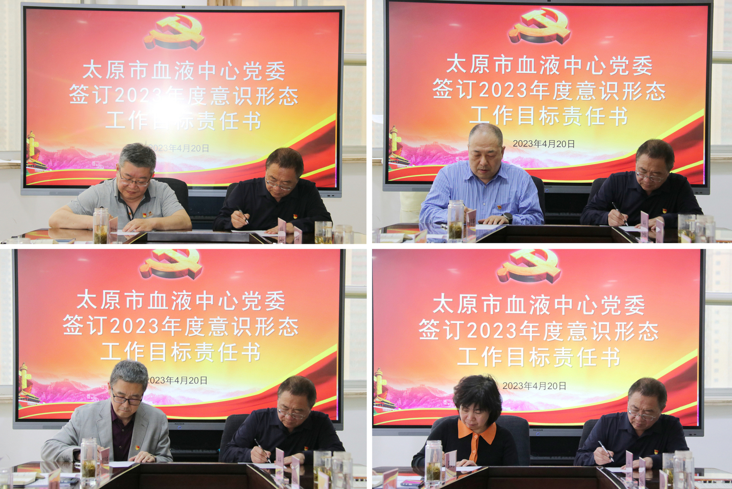 会议最后开展了血液中心党委2023年第一季度意识形态领域分析研判会议,并签订《中共太原市血液中心委员会2023年度意识形态工作目标责任书》。