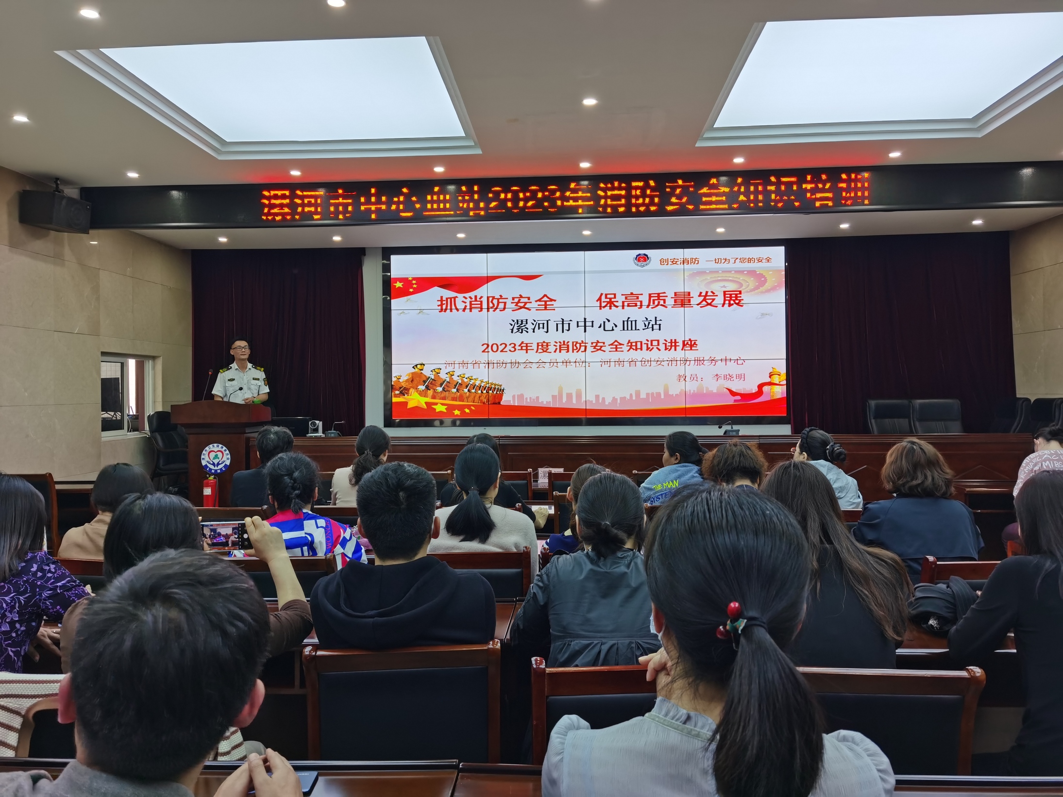 为普及消防安全常识,提升血站员工应急防护自救和逃生能力,增强员工在遇到火灾火险时的逃生、自救能力,强化消防安全意识,切实做好安全生产工作,4月27日,我站邀请河南省创安消防服务中心李晓明老师为全站员工开展了消防安全培训讲座,会后进行了一次消防安全演练。