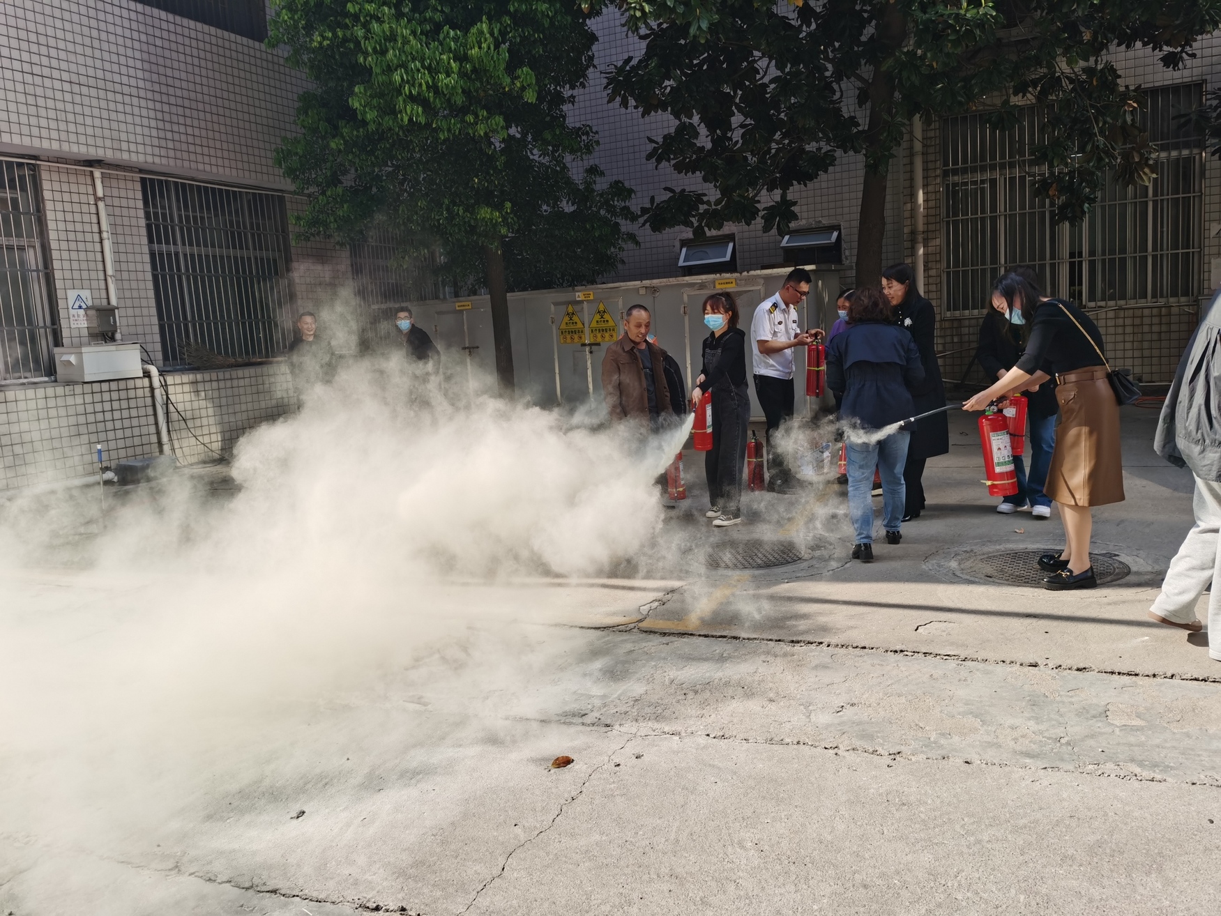 演练现场,血站员工首先学习了灭火器的使用方法,掌握了如何正确操作、使用灭火器,并分组进行演练。演练过程中,大家有效地控制了现场火势,熟练使用消防器材和设施,一切秩序井然。