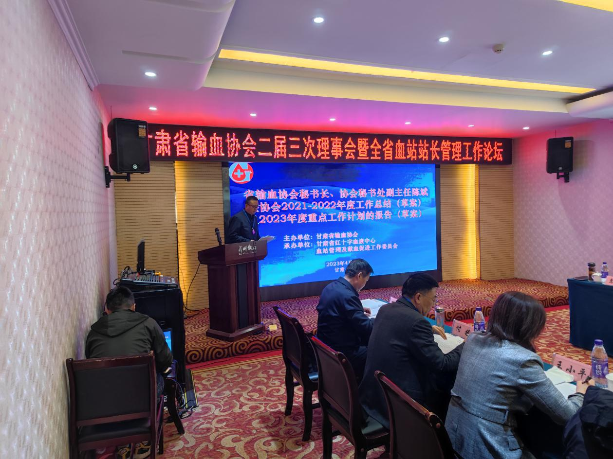 甘肃省输血协会二届三次理事会暨全省血站站长管理工作论坛在兰顺利召开