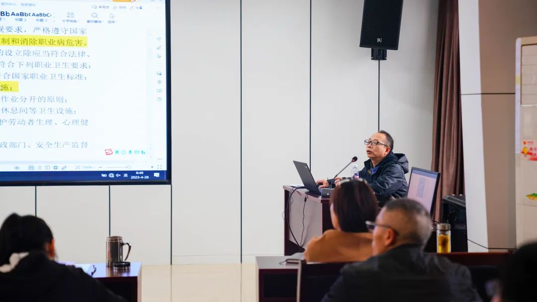 为扎实推进卫生健康系统法治建设,加大卫生健康普法工作,全面优化采供血服务,市中心血站结合2023年《职业病防治法》宣传周活动及全市卫生健康法治建设工作要求,于4月28日开展了卫生健康学法普法以及安全生产培训。此次培训由市中心血站副站长沈有华、副站长吴江亭、成分科汪辉老师,检验科余司华老师授课。