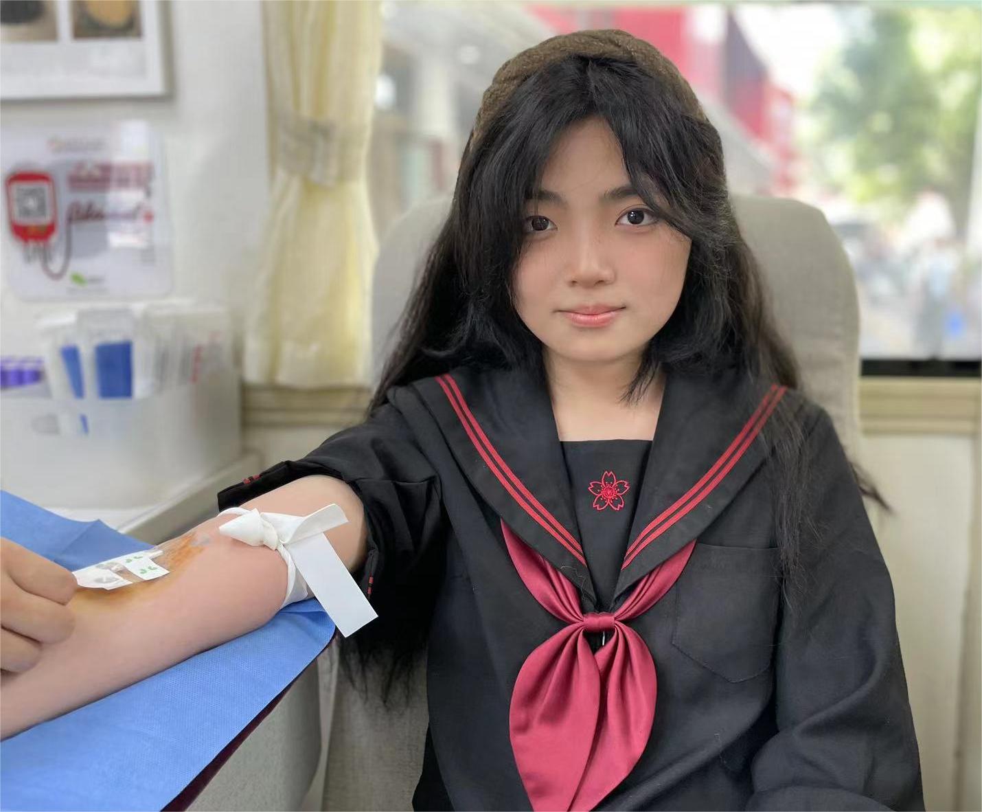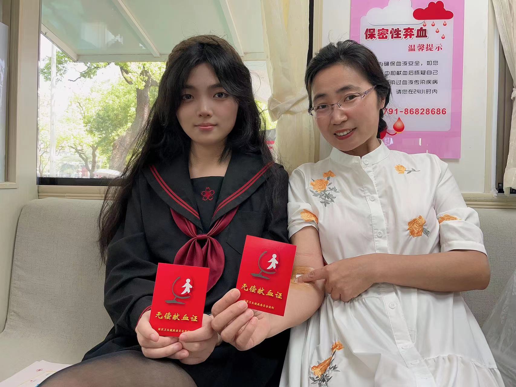 来自江西外语外贸大三日语专业的隋刘百慧趁着五一假期和母亲在街头逛街路过来到献血车,正好当一回“热血卫士”。她说自己这是第二次献血了,第一次在大学时学校组织的献血,作为青年人,我们应踊跃参与无偿献血,为社会贡献自己的一份力量,不负时代赋予我们的使命。为社会做点贡献。她母亲看见女儿撸袖献血随后自己也勇敢的撸袖献血。