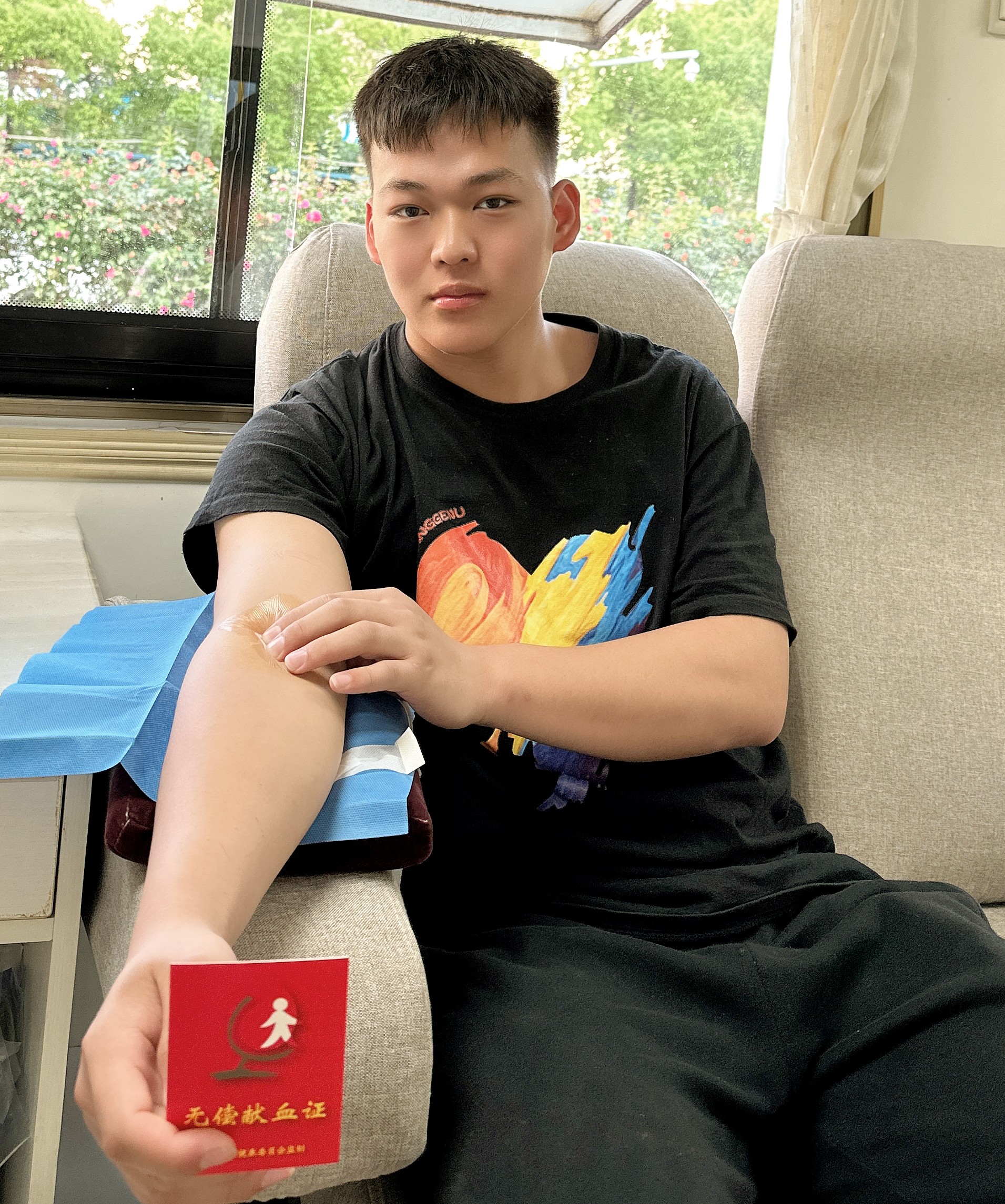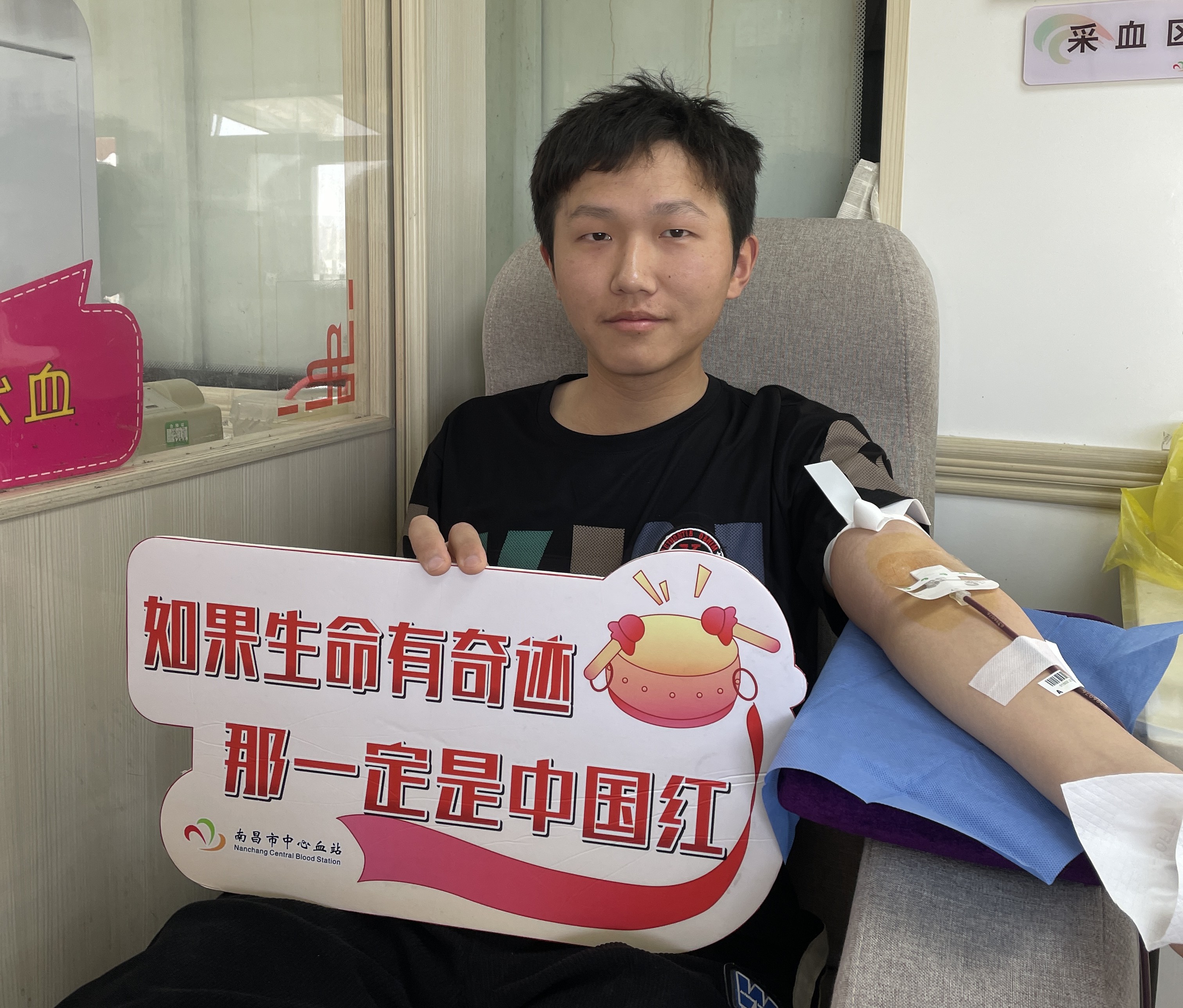 献血者李稼祺自身是护士专业,对于献血还是有一定了解的。他说马上要实习了就没时间出来献血了,乘着五一假期来南昌游玩顺路看见就走上我们的献血车。这是他第二次献血,他觉得献血不仅仅是奉献爱心,也有利于身体。
