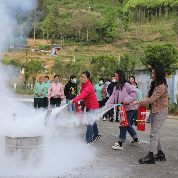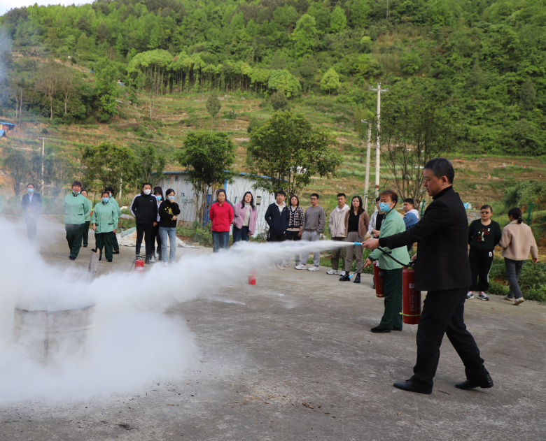随后,贵州民谋消防知识宣传服务中心的教官们向大家讲解常见灭火器的种类与使用范围,现场演示使用方法,并指导各参训人员如何使用灭火器。在一股股浓烟之中,各参训人员切实掌握了灭火器的使用方法,提高了消防应急处置能力。
