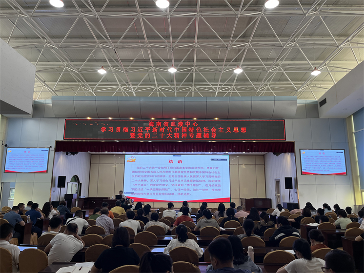 4月28日,海南省血液中心学习贯彻习近平新时代中国特色社会主义思想主题教育暨学习贯彻党的二十大精神专题辅导会在中心五楼多功能厅举行。本次辅导会邀请学习贯彻党的二十大精神专家宣讲团成员、海南大学涂刚鹏教授,作题为“向着中华民族伟大复兴奋勇前进”的主题报告。省血液中心副主任冯增强主持。