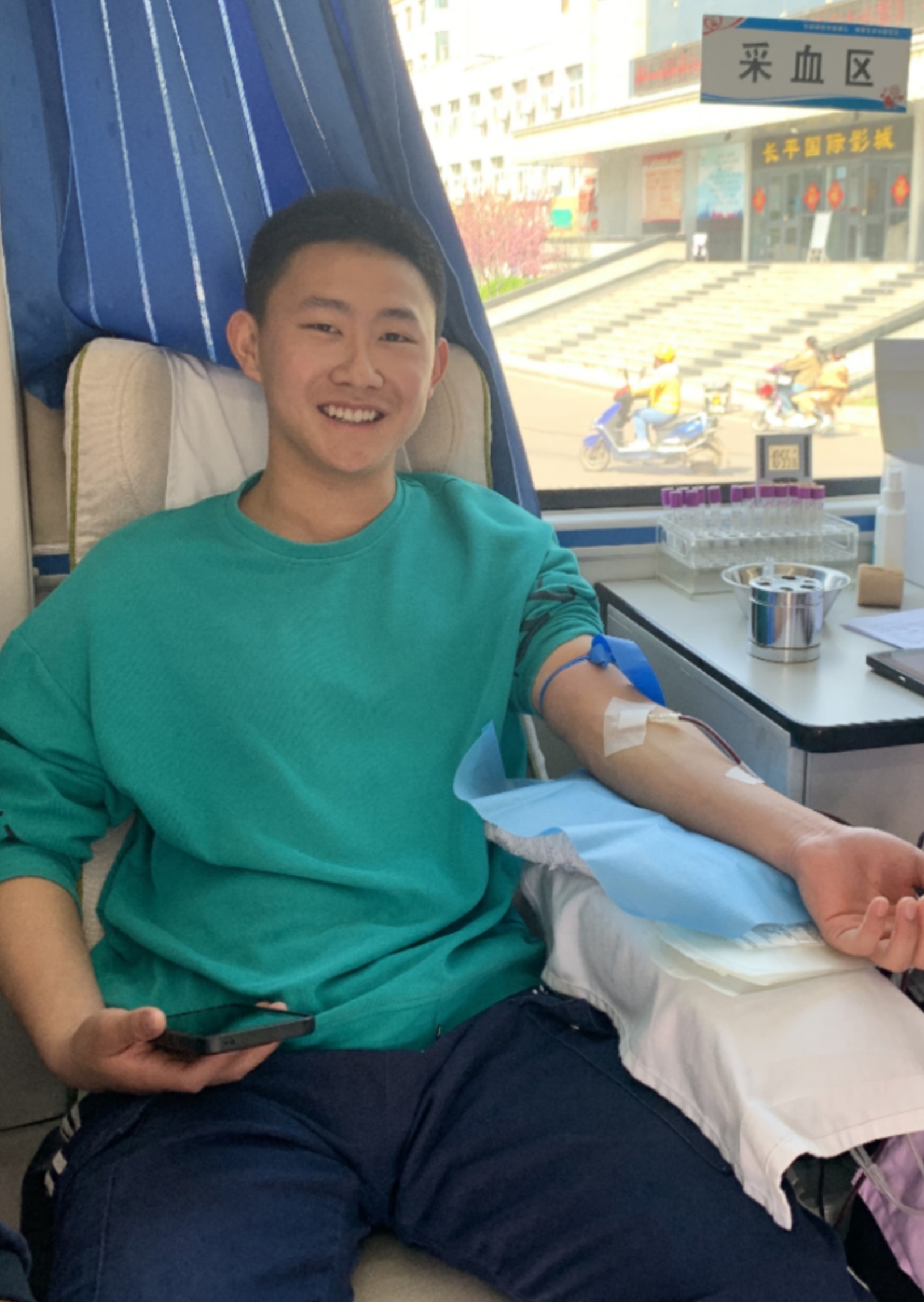 4月10日上午10点,在高平长平广场的献血车上,“00后”大学生关泽涛再次迎来“热血时刻”,这是他第二次献血。与以往不同的是,今年9月份,他将奔赴军营成为一名新兵,这也是他入伍前的最后一次献血。