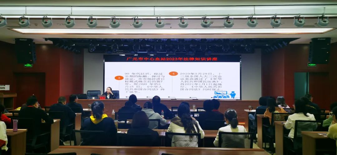 为深入贯彻落实党的二十大关于坚持全面依法治国、推进法治中国建设的重大部署,进一步增强全站职工法治观念,5月9日上午,市中心血站组织开展法律知识培训,全站干部职工60余人参加培训。