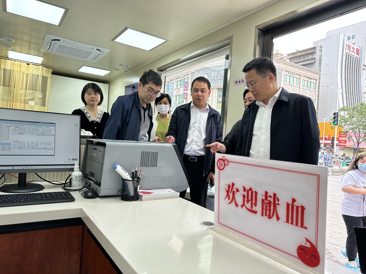 5月23日上午,市委卫健工委书记、市卫健委主任朱世鸣一行到中心血站各献血点进行调研指导。市中心血站领导班子陪同调研。