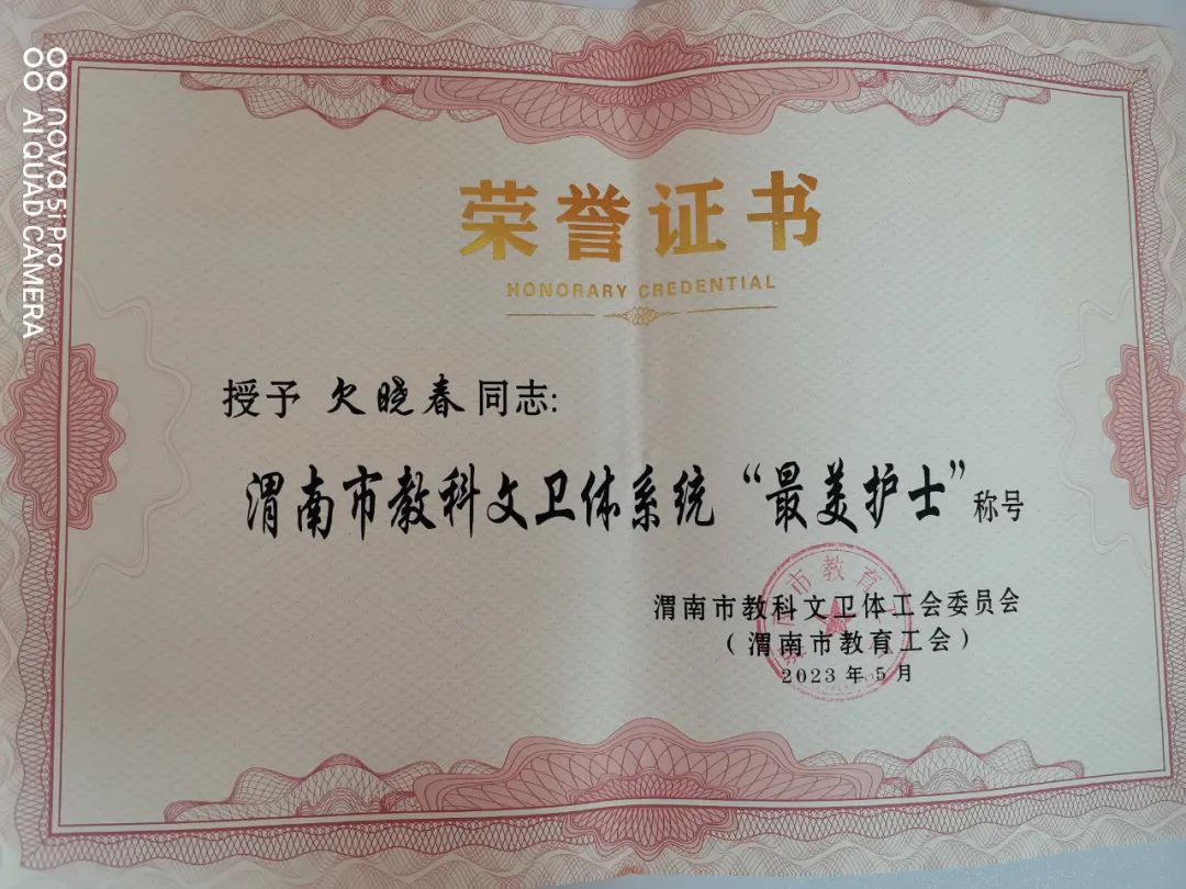 5月23日,渭南市教科文卫体工会召开第一届委员会第二次全体会议,表彰全市教科文卫体系统“最美教师”“最美医生”“最美护士”,渭南市中心血站欠晓春荣获“最美护士”称号。
