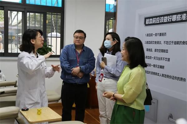 5月19日上午,上海市血液中心主任张晰一行莅临杨浦区开展无偿献血工作专题调研。区卫生健康促进中心(区血液管理事务中心)主任孙云及相关部门工作人员陪同。