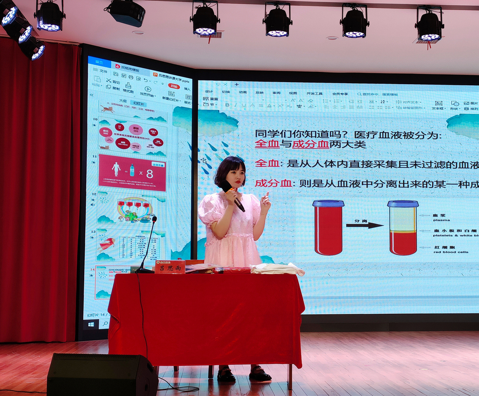 作为无偿献血的宣传者,血站宣讲团有责任、有义务普及更多的献血常识,让更多的大学生了解血液知识,从而积极参与无偿献血。 除了高校,血站宣讲团也同时开展中小学、企业、事业单位的宣讲工作和无偿献血活动。