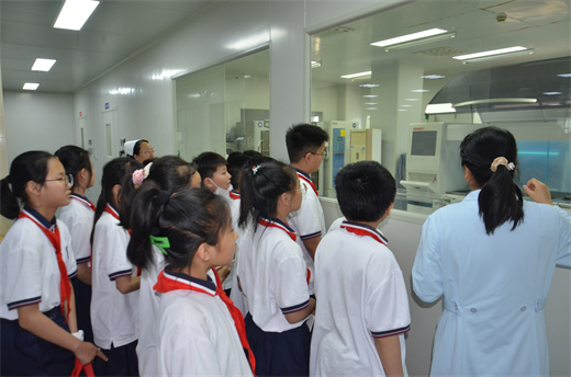 在飞速转动的离心机前,同学们的思维也异常活跃。他们认真聆听每一种血液成分的特点和适应症,激发了浓厚的学习兴趣;实验室一台台运行着的精密检测设备,给同学们带来强烈的视觉冲击。通过讲解,了解到酶免检测和核酸检测就像两道关卡,牢牢守住血液安全的大门。