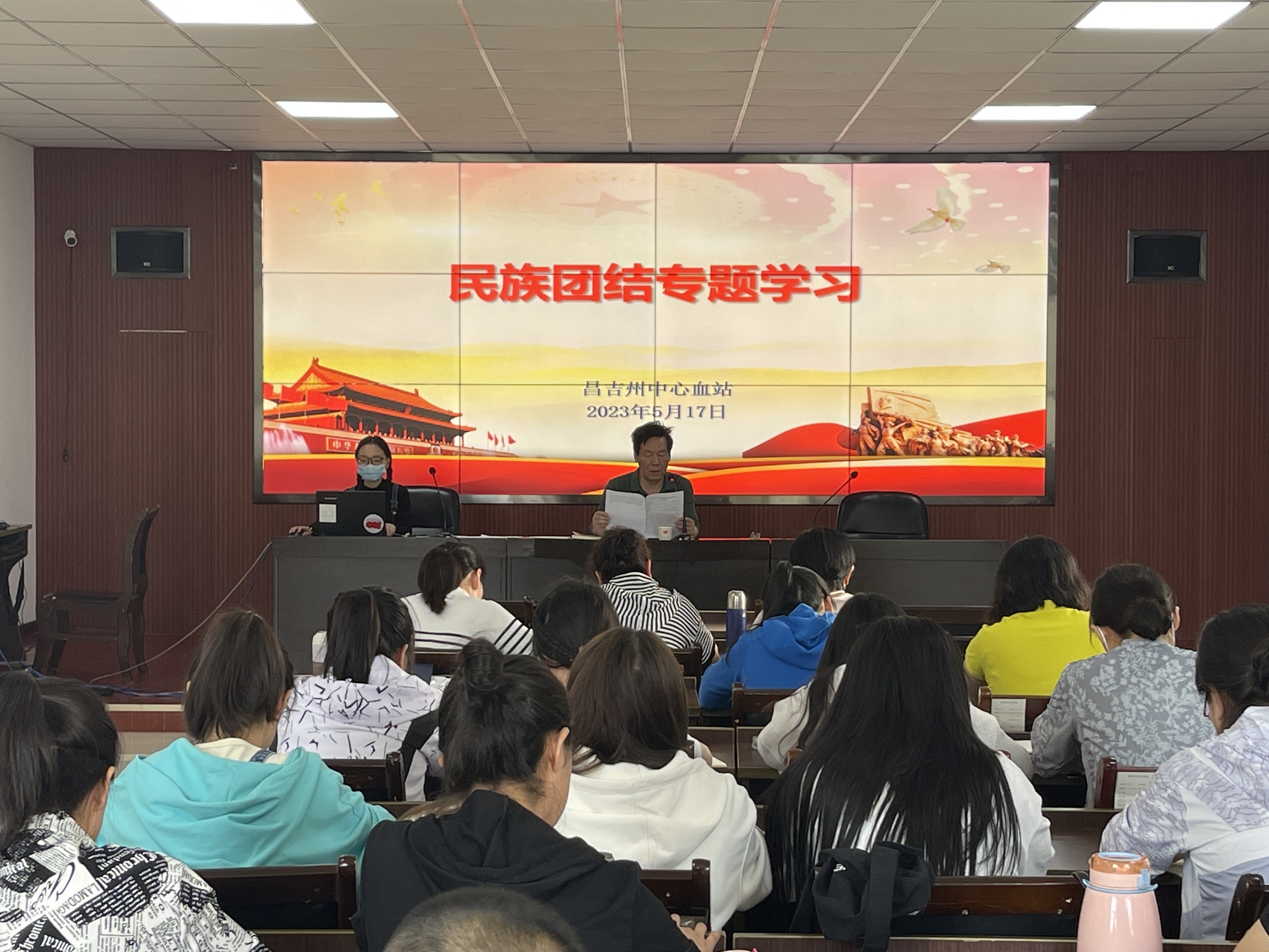 会上,血站副站长李仁义带领全站职工一起学习了习近平总书记关于加强和改进民族工作的重要思想、中央民族工作会议精神、新时代民族团结创建等知识。