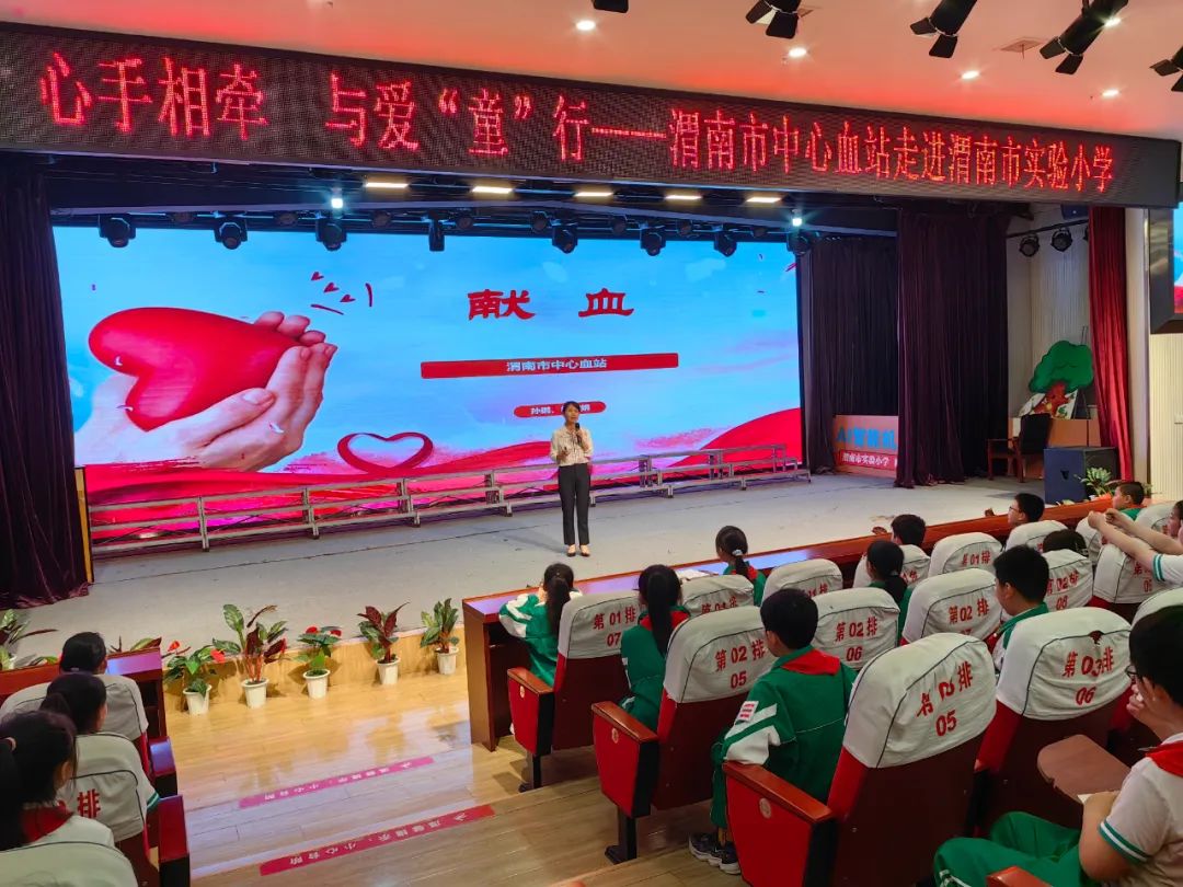 在“六一”儿童节来临之际,为增强中小学生对无偿献血的认知,在孩子们心中播种下一颗“爱心奉献”的种子,5月30日,渭南市中心血站工作人员走进渭南市实验小学,为这里的学生进行了心手相牵,与爱“童”行无偿献血科普知识讲座。