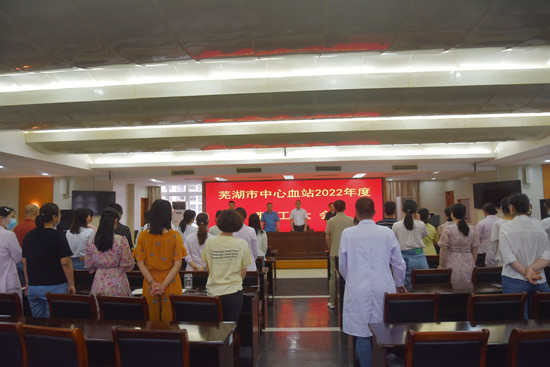 5月30日,芜湖市中心血站2022年度全体干部职工大会在庄严的国歌声中拉开序幕。站领导及全体干部职工到会,共同谋划推进血站高质量发展新篇章。