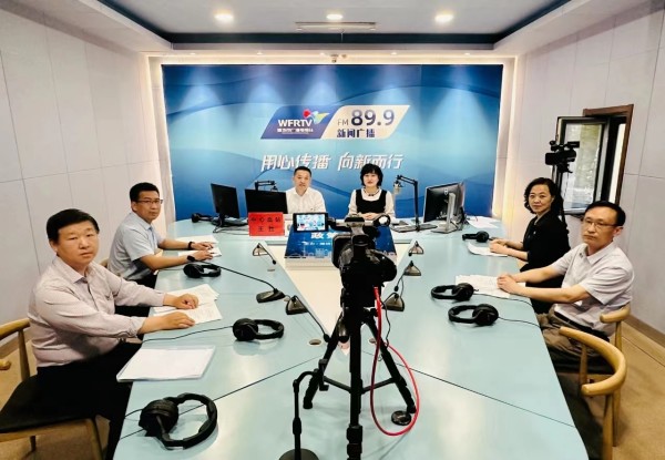 潍坊市中心血站领导坐客市广播电台《政策访谈》直播间