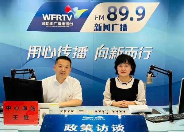 在第20个“世界献血者日”来临之际,潍坊市中心血站党委书记、站长王胜一行5人坐客潍坊人民广播电台直播间,为广大听众解读无偿献血相关政策,并向无偿献血者们送上节日祝福。