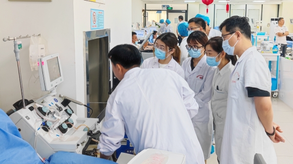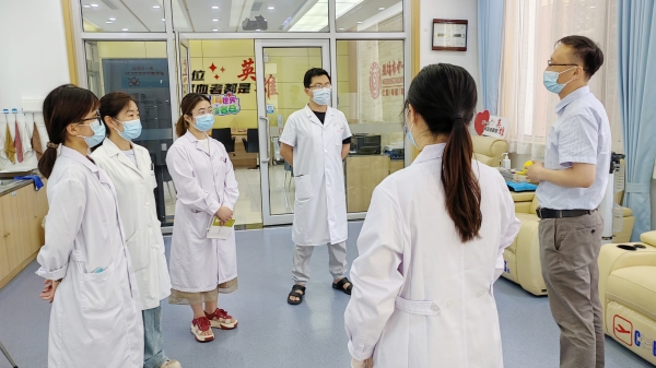 为了让医疗机构输血科人员更深入了解血站的工作流程,在培训临近结束时,安排他们到血站采血屋、机采科、血供科现场参观学习。