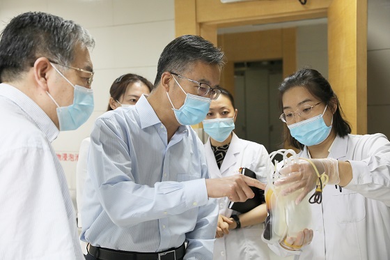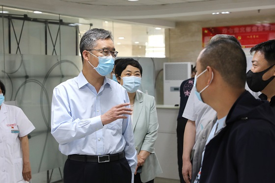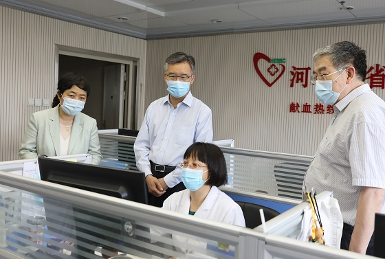 5月26日,省卫健委党组书记、主任王现坤到河北省血液中心实地调研血液管理工作,省卫健委党组成员、副主任高丽君,党组成员、副主任、省疾控局局长孙国安,医政处副处长王佳等陪同调研。