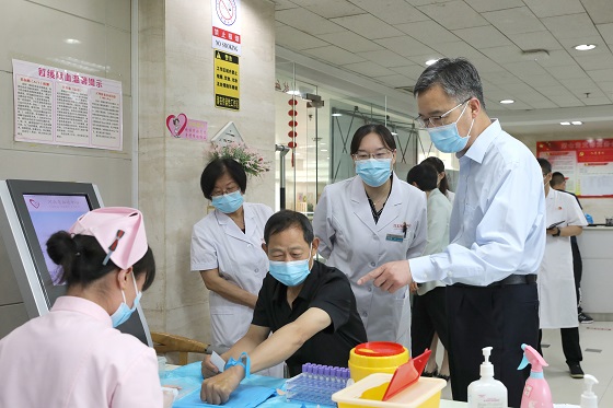 调研期间,王现坤主任还与前来献血的献血者们亲切交谈,询问献血者献血情况,对献血者无私奉献行为表示充分肯定,同时叮嘱现场工作人员要做好献血服务工作,为献血者营造温馨舒适献血环境。
