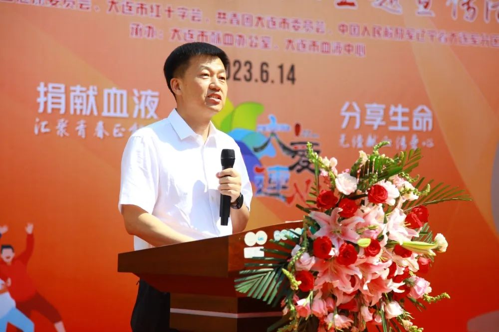 市卫健委副主任曲刚发表讲话,感谢所有的无偿献血者、献血的组织者和默默支持无偿献血事业的人。一直以来市委、市政府高度重视无偿献血工作,市红十字会、市团委、高教工委等部门都十分关心支持无偿献血工作,让我市无偿献血工作取得了健康稳定的发展。献血是生命的延续, 能让更多的人获得健康。感谢无偿献血者的无私奉献、组织者的齐心同力,保障了大连市临床用血的安全。希望大家能够一直保持献血救人的初心,传递这份自豪感和获得感,让无偿献血影响越来越多的人、让更多生命得到延续,让我们的社会能够更和谐、为医疗事业的发展提供更有力的保障。