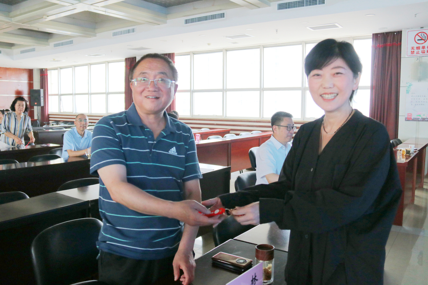 送吉祥,中心领导为在座全体职工送上吉祥,希望每一位参与道德讲堂的同事都能将正能量传递给身边人,愿大家爱国爱家,多行善举,传承优秀传统文化,用实际行动弘扬家国情怀,让爱国精神在血脉里代代相传,在新时代凝聚起自强不息、砥砺前行的伟大力量,助力无偿献血事业在新时代高质量发展。