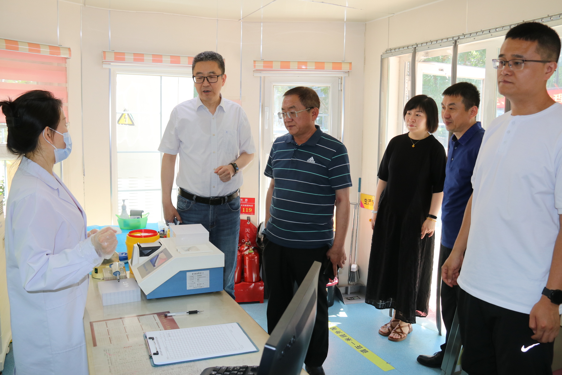 6月20日上午,中心党委书记、主任白林,副主任王卫东在办公室主任陈龙、党群科主任武锦慧的陪同下对郝庄等献血屋进行了安全检查。