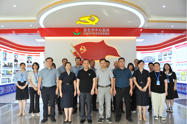 6月26日,中国输血协会理事长朱永明来到百色市中心血站开展基层血站调研工作。百色市卫生健康委党组成员、副主任张军,市中心血站党支部书记、站长梁朦尹,副站长覃宁、梁山,血站各科室负责人陪同,防城港市中心血站党支部书记、站长陈锡山受邀参加调研。