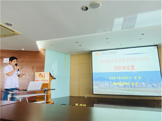 血液,是生命的源泉,更是延续生命的希望。无偿献血不单纯是一项特殊的治病救人的措施,更是一项利国利民的公益事业,是社会文明进步的重要标志。为更好地服务于献血者,减低献血反应的发生概率,2023年6月20日下午,中心副主任傅强在七楼报告厅做“献血相关血管迷走神经反应(DRVR)的预防和处置”专题全员培训。