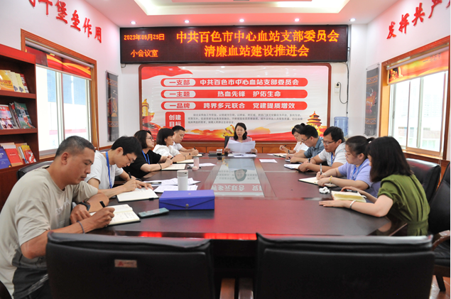 6月25日下午,百色市中心血站组织召开清廉血站建设推进会。血站党支部委员、站领导班子及有关科室负责人参加会议。