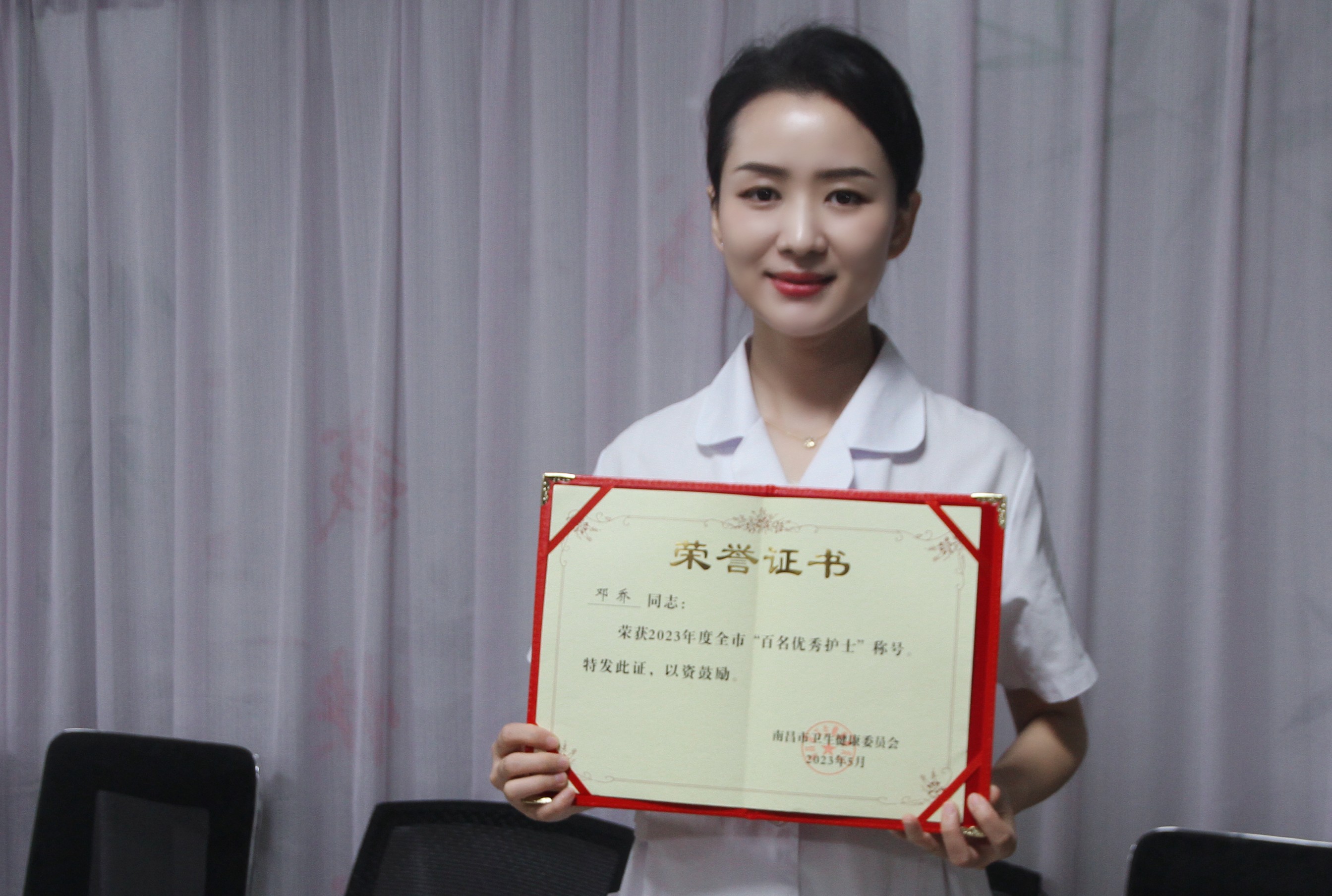为进一步弘扬爱岗敬业精神,树立我市护理工作者先进典型,对做出突出贡献的护士进行表彰,南昌市卫健委在今年“5.12国际护士节”开展了全市“百名优秀护士”评选活动。近日,评选证书下发,南昌市中心血站机采室护士邓乔同志荣获2023年度南昌市“百名优秀护士” 殊荣。