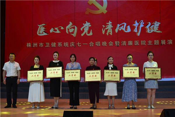 回顾党的光辉历程,讴歌党的丰功伟绩, 6月28日,株洲市卫健系统“医心向党 清风护健”庆“七一”合唱晚会暨清廉医院主题展演在市第二工人文化宫三楼多功能厅顺利举行,12支参赛队伍轮番登台、倾情放歌。经过激烈角逐,我站代表队荣获二等奖。