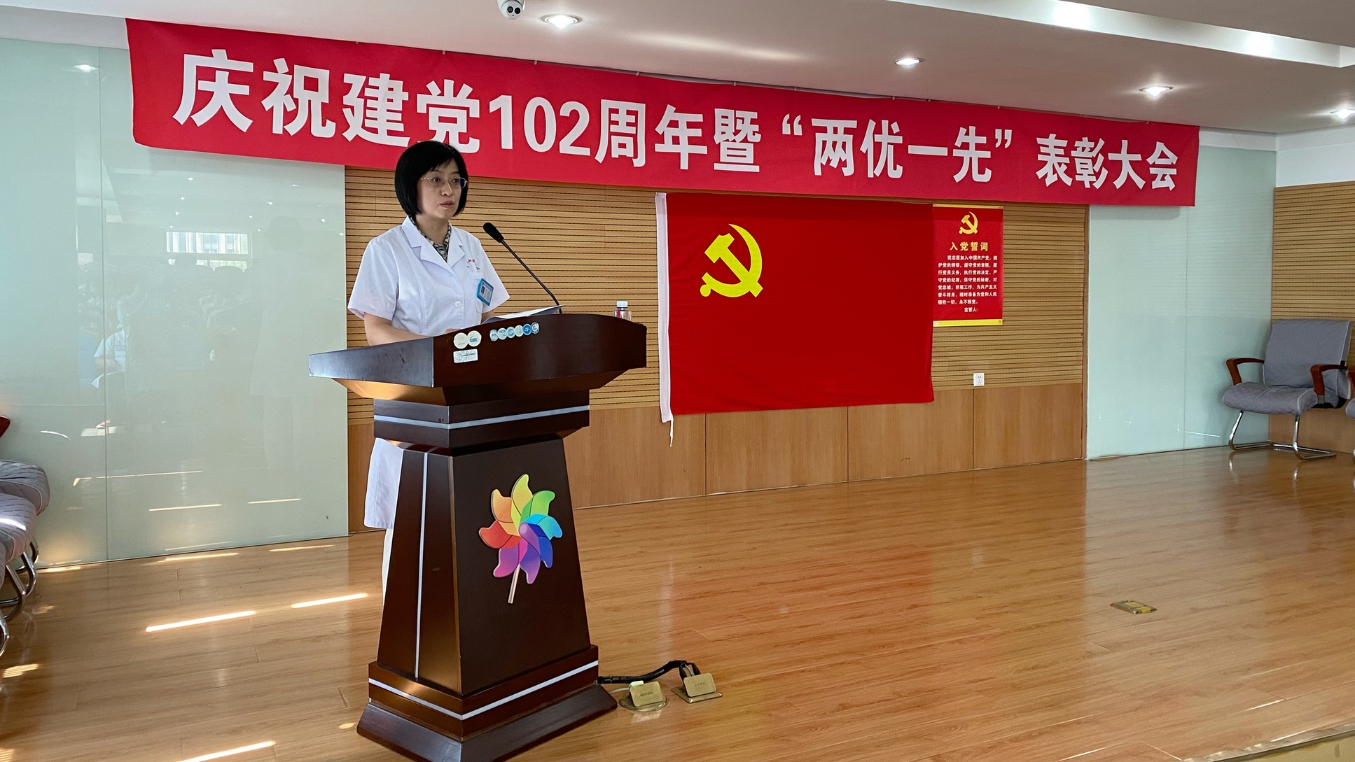 为总结经验、表彰先进、树立典型,6月30日,大连市血液中心召开庆祝建党102周年暨“两优一先”表彰大会。中心领导班子、党委委员、在职党员及入党积极分子参加会议,大会在奏唱国歌中开始。