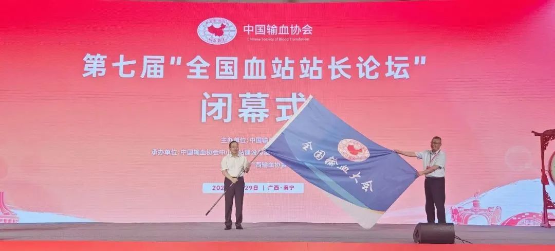 2023年6月28日-29日,由中国输血协会主办,中国输血协会中小血站建设与发展工作委员会和南宁中心血站共同承办,广西输血协会协办的第七届“全国血站站长论坛”在广西南宁成功举办。在29日的闭幕式上,正式官宣安徽省血液中心承办2024年“第十二届输血大会”。