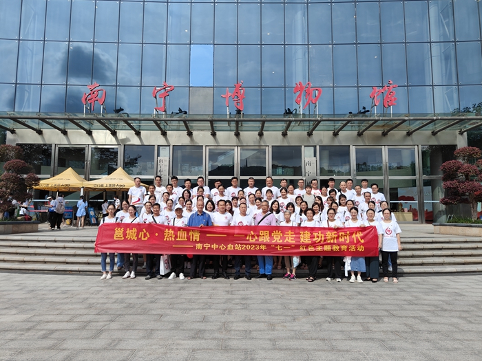 为庆祝中国共产党成立102周年,深入学习贯彻习近平中国特色社会主义思想和党的二十大精神,加强血站党员党性修养,激励广大党员继承和发展党的光荣传统,2023年6月30日,南宁中心血站组织70余名在职党员和离退休党员干部赴南宁博物馆开展“一心跟党走 建功新时代”七一红色主题教育活动。