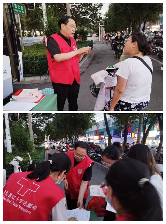 活动中,大家为献血者提供健康咨询、解惑答疑、指导填表、协助采血一线人员现场征询、发放献血纪念品、身体力行用实际行动撸袖献血奉献爱心、为社会大众免费测量血压、为意外受伤的群众提供紧急医疗救助.....“志愿红”忙碌的身影成为石家庄市街头晚间采血服务点上的一道亮丽的风景线。