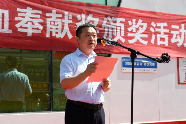 潍坊市中心血站党委书记、站长王胜宣读表彰决定。